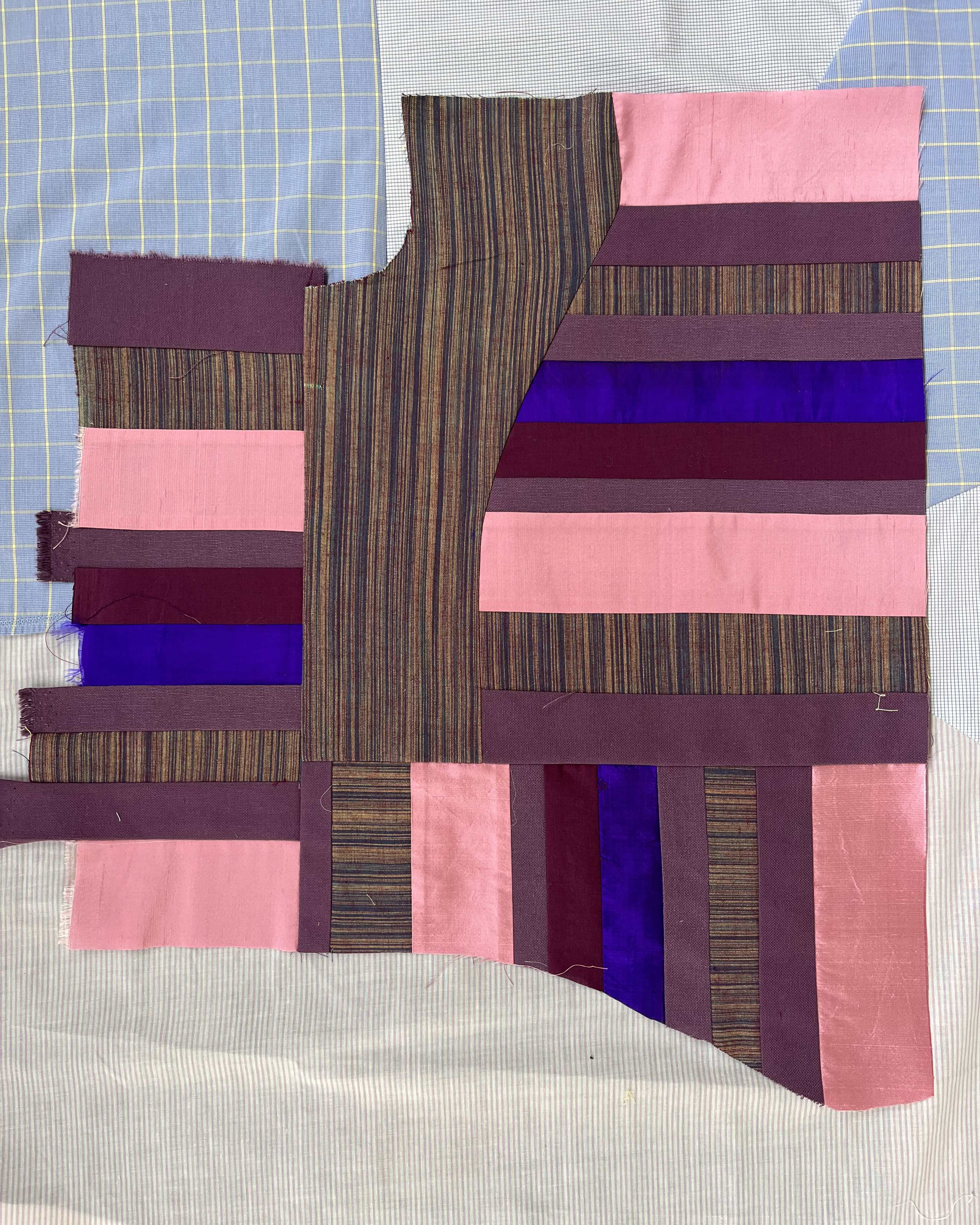 Listed below are a selection of pieces and images of Isabel’s newly launched ‘Improvised Offcut Patchwork’ course. The online course will begin in January 2026. Please visit Isabel’s shop to purchase work or book your place on her online course.