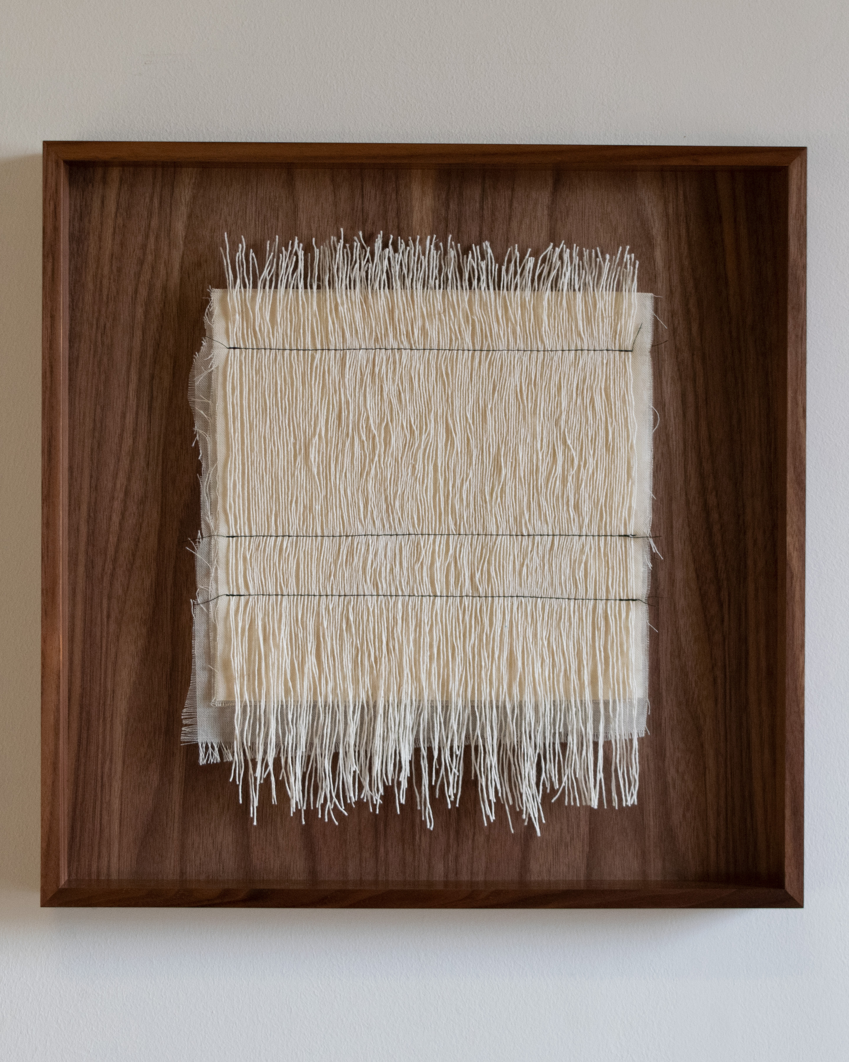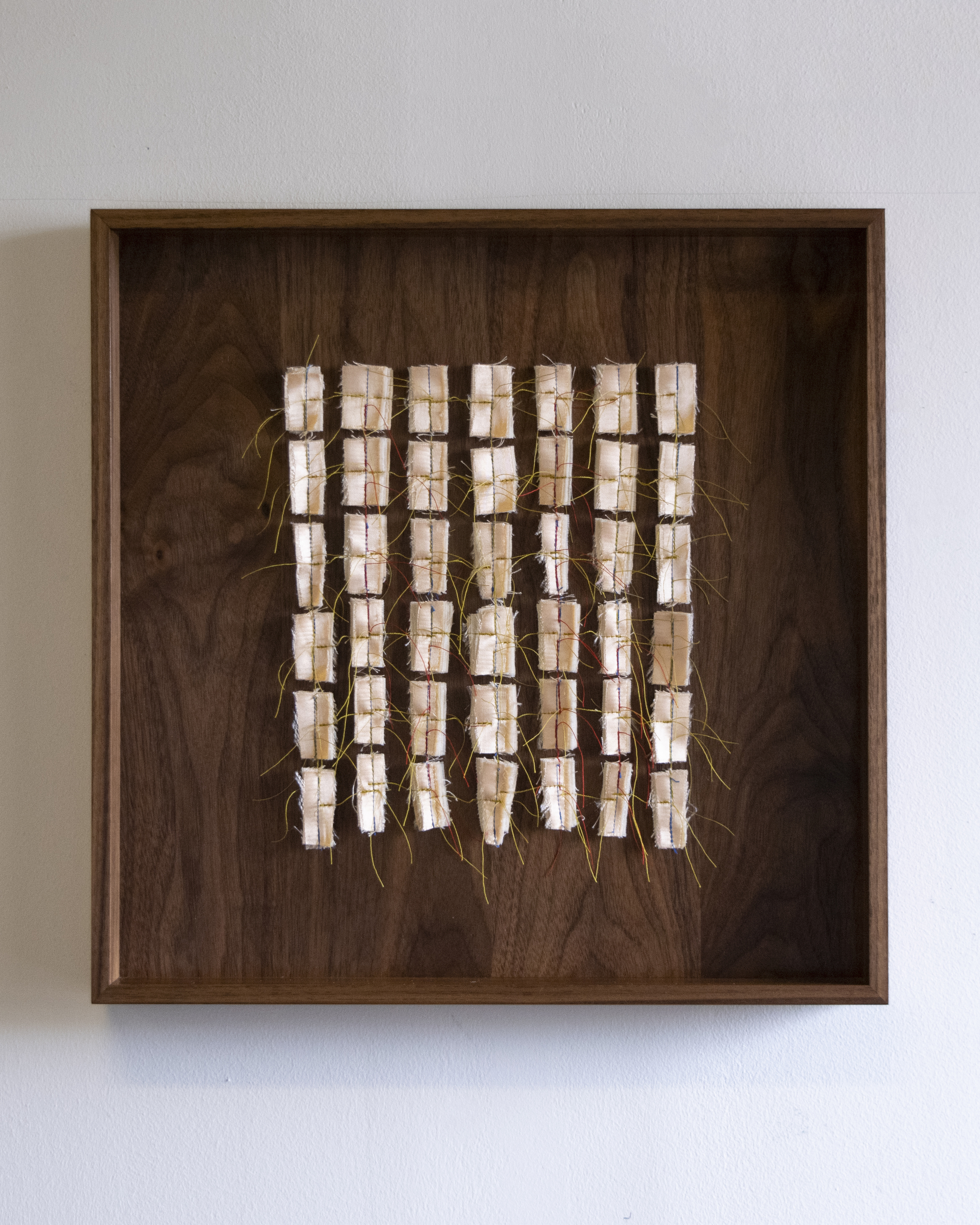 (Right) Industrial Offcuts: Freed of London, Grid. Ballet shoe offcuts and thread framed in walnut. Sold.